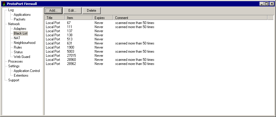 - Expires - specified a date when item will be removed from black list automatically. The item will be removed from list in 5 days, if one wad added to list by program automatically. You can change this behaviour at any time.