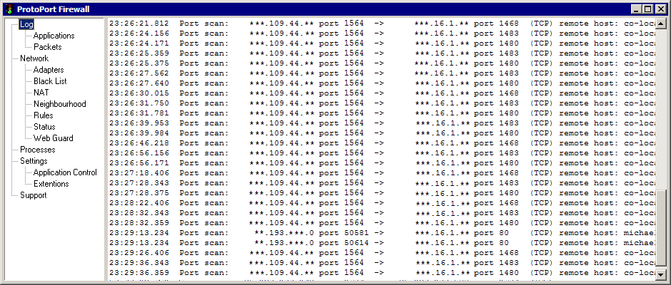 Personal Firewall outputs all warnings and some other information in the Log window. Program does not save this data anywhere, so nest time you load firewall, the log will be empty. | ||||||||||||