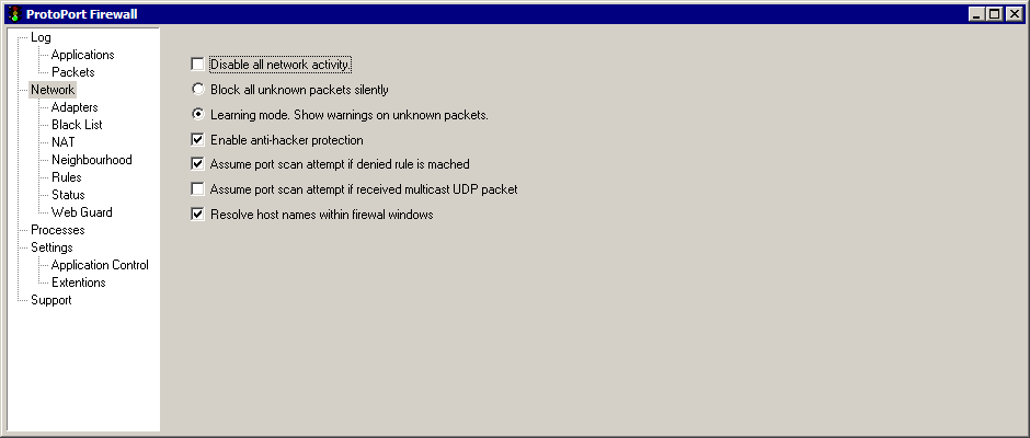 - Disable all network activity - this will block all received and sent network packets, if checked.