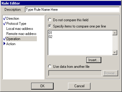- Specify items... - program will assume ARP operation is matched if at least one ARP operation number specified is matched.