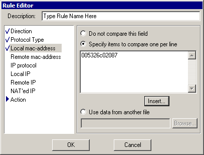 - Specify items... - program will assume MAC address is matched if at least one MAC address specified is matched.