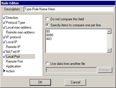 - Specify items... - program will assume port number is matched if at least one port number specified is matched.