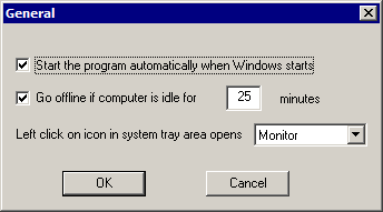 Here you can specify if you want to load program manually or automatically. It's good idea to force live support system to go off-line if your computer is idle for a long time.